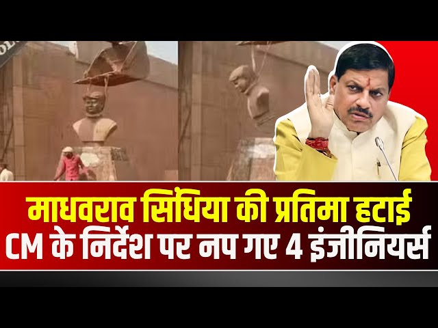 भोपाल : कटनी जिले का एक वीडियो वायरल हो रहा है, जिसमें कांग्रेस के दिग्गज नेता व पूर्व केन्द्रीय मंत्री माधवराव सिंधिया की प्रतिमा को आपत्तिजनक तरीके से हटाया गया है. उनके गले में रस्सी डालकर प्रतिमा को हटाया गया. इस मामले में कांग्रेस ने आपत्ति जताई तो सीएम डॉ. मोहन यादव ने भी नाराजगी जताई, जिसके बाद 4 इंजीनियर को निलंबित किया गया है.