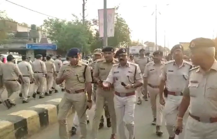 इन संवेदनशील क्षेत्रों व मार्ग में निकाला गया फ्लैग मार्च-