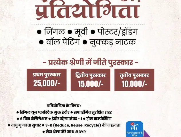 इंदौर। इंदौर नगर पालिका निगम द्वारा स्वच्छ सर्वेक्षण 2023 के लिए एक प्रतियोगिता आयोजित की जा रही है। ये प्रतियोगिता 5 श्रेणियों में 8 विषयों पर…