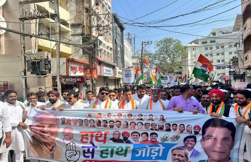 रायपुर: सांसद राहुल गांधी की ‘भारत जोड़ो यात्रा’ की तर्ज पर कांग्रेस ने बृहस्पतिवार को छत्तीसगढ़ में ‘हाथ से हाथ जोड़ो’ पदयात्रा की शुरुआत की। इसकी शुरुआत राजधानी रायपुर से हुई। प्रदेश कांग्रेस कमेटी के संचार विभाग के अध्यक्ष सुशील आनंद शुक्ला ने बताया कि रायपुर के गांधी मैदान से एआईसीसी के पर्यवेक्षक अरुण यादव और प्रदेश कांग्रेस अध्यक्ष मोहन मरकाम ने ‘हाथ से हाथ जोड़ो’ पदयात्रा की शुरुआत की। राज्य के 307 ब्लॉक संगठनों में एक साथ ‘हाथ से हाथ जोड़ो’ पदयात्रा शुरू हुई। पहले दिन लगभग तीन हजार किलोमीटर की पदयात्रा की गई। यह पदयात्रा पूरे दो माह तक चलेगी। प्रतिदिन प्रत्येक ब्लॉक में 10 किलोमीटर पदयात्रा करने का लक्ष्य रखा गया है।