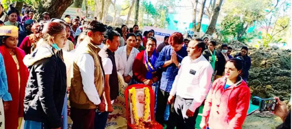 भोपाल : संविदा स्वास्थ्य कर्मचारी संघ द्वारा आज प्रधानमंत्री नरेंद्र मोदी की मां हीराबा के निधन पर दुख व्यक्त करते हुए उन्हें सामूहिक श्रद्धांजलि दी गई। इन्होने उनकी तस्वीर पर माल्यार्पण किया और दो मिनिट का मौन रखा। श्रद्धांजलि कार्यक्रम सभी जिलों में आयोजित किया गया। भोपाल के जेपी अस्पताल में श्रद्धांजलि सभा आयोजित की गई। बता दें कि भोपाल सहित प्रदेश के सभी जिलों में 32000 कर्मचारी 15 दिसम्बर से अनिश्चितकालीन हड़ताल पर हैं।