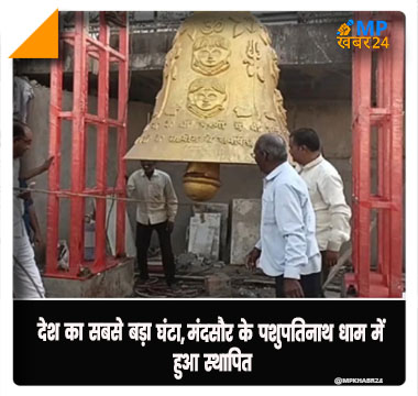 मध्यप्रदेश : मंदसौर के पशुपतिनाथ मंदिर में निर्माणाधीन सहस्त्र शिवलिंग मंदिर के पास 3700 किलो का महा घंटा स्थापित किया गया है, जो कि देश और दुनिया का सबसे भारी घंटा है। 10 कारीगरों की टीम ने 6 महीने दिन रात काम कर इस घंटे का निर्माण किया है। महा घंटे को बनाने में 36 लाख रुपये खर्च किए गए हैं। घंटे की एक और खासियत यह है कि इसमें बाहर भगवान पशुपतिनाथ की आकृतियां उकेरी गई हैं। मुख्यमंत्री शिवराज सिंह चौहान सहस्त्र शिवलिंग मंदिर में प्राण प्रतिष्ठा के दौरान दुनिया के सबसे बड़े घंटे का उद्घाटन भी करेंगे। बता दें मध्य प्रदेश के रतनगढ़ देवी मंदिर में 1635 किलो का घंटा स्थापित है।