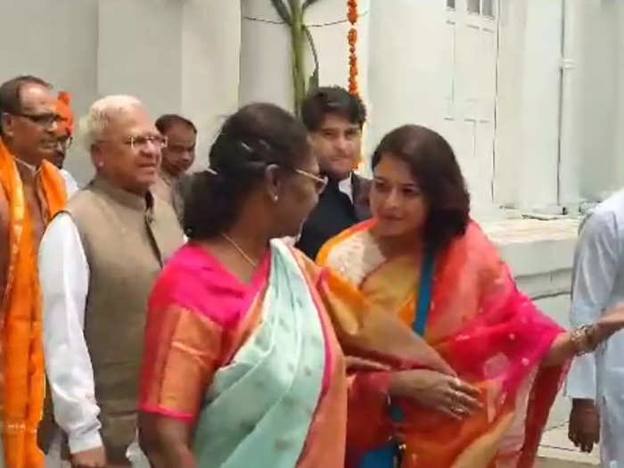 राष्ट्रपति द्रौपदी मुर्मू सिंधिया परिवार की शाही मेहमान हैं। जय विलास पैलेस में प्रियदर्शिनी राजे सिंधिया ने उनकी आगवानी की है। साथ में पूरा सिंधिया परिवार वहां मौजूद था। राष्ट्रपति के साथ प्रियदर्शिनी राजे सिंधिया और उनके बेटे महाआर्यमन सिंधिया आगे-आगे चल रहे थे।