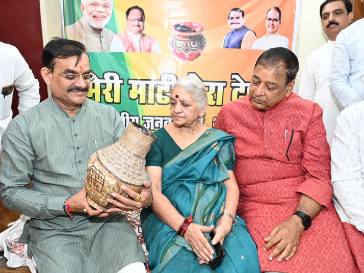 वीडी शर्मा ने कहा कि ‘आज मैं भोपाल में इस अभियान के तहत शहीद कैप्टन देवाशीष शर्मा जी के घर पहुंचा और मेरी माटी मेरा देश कलश में श्रद्धेय माताजी ने एक मुट्ठी मिट्टी और चावल हमें दिया है। इस कलश को लेकर 31 अक्टूबर तक देश में अभियान चलेगा और फिर ऐसे 75,000 ऐसे कलश दिल्ली पहुंचेंगे। शहीद स्मारक पर कलश पहुंचने के बाद प्रधानमंत्री जी कार्यक्रम आयोजित करेंगे। पूरे देश में भाजपा के कार्यकर्ता और आम नागरिक हर घर जाकर इस अभियान में अपना सहयोग देंगे। हमने अपने संगठन से भी आह्वान किया है कि घर-घर जाकर इस प्रकार से कलश में एक मुट्ठी मिट्टी और चावल लें। हम इस अभियान की आज शुरुआत कर रहे हैं। क्रांतिकारी शहीदों ने अपना जीवन बलिदान करके भारत माता की रक्षा की है और ऐसे सभी शहीदों के लिए प्रधानमंत्री के आह्वान पर हम जुट गए हैं।’
