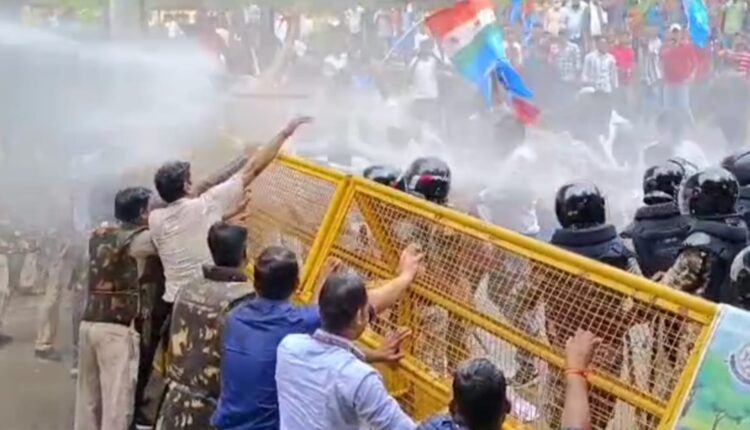 बैरिकेड पर चढ़े छात्र, पुलिस ने किया लाठीचार्ज, चलाई वाटर कैनन