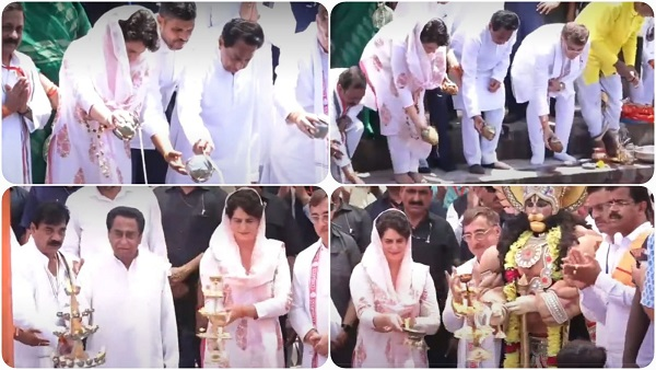जबलपुर : कांग्रेस की राष्ट्रीय महासचिव प्रियंका गांधी वाड्रा ने आज जबलपुर से कांग्रेस के मेगा प्रचार अभियान की शुरुआत की। सबसे पहले उन्होने ग्वारीघाट पर 101 ब्राह्मणों के साथ नर्मदा पूजन और महाआरती की। उनके साथ कांग्रेस प्रदेश अध्यक्ष कमलनाथ और कई वरिष्ठ कांग्रेसी नेता मौजूद थे।