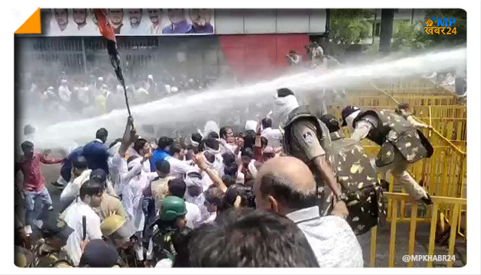 मध्य प्रदेश सीएम हाउस का घेराव करने निकले कांग्रेस युवाओं पर वॉटर केनन का इस्तेमाल