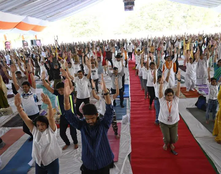 हजारों लोग इस आयोजन का हिस्सा बने। पहले श्रीश्री रविशंकरमंत्रोचार और संकल्प से शुरुआत की। उसके बाद योग का अभ्यास शुरू हुआ। इस दौरान मंच पर इंदौर के मेयर पुष्यमित्र भार्गव भी योग करते नजर आए। सोशल मीडिया पर उनकी तस्वीर वायरल हो रही है। इसके बाद रुद्र पूजन करवाया गया। साथ ही लक्ष्य से भटक लोगों को हिम्मत दी और नकारात्मक भावना कम करने की टिप्स भी दी।