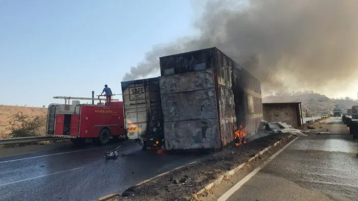 धार : मध्यप्रदेश में आए दिन सड़क हादसों की खबर सुनने को मिलती है। अभी हाल ही में एमपी के धार जिले से एक दर्दनाक सड़क हादसे की खबर सामने आई है। बताया जा रहा है कि धामनोद थाना क्षेत्र में गणपति घाट पर दो वाहनों के बीच जोरदार टक्कर हो गई। कार से भरे कंटेनर सहित अन्य एक वाहन में भी भीषण आग लग गई। इस आग में दो लोगों के जिन्दा जलने की खबर आ रही है। इस हादसे के बाद आसपास के क्षेत्रों में हड़कंप मच गया।