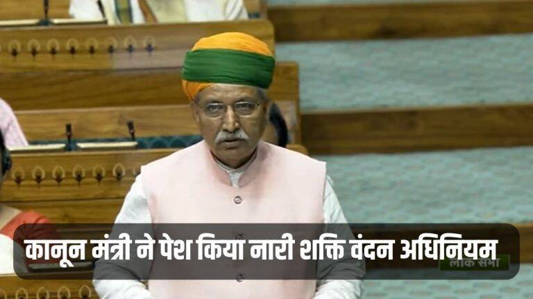 नई दिल्ली : सोमवार को कैबिनेट से मंजूरी मिलने के बाद आज मंगलवार को गणेश चतुर्थी के शुभ मौके पर नए संसद भवन में महिला आरक्षण बिल पेश किया गया। मोदी सरकार की तरफ से यह बिल कानून मंत्री अर्जुन मेघवाल ने पेश किया और अब इस पर बुधवार को बहस होगी। पीएम मोदी ने इस बिल को नारी शक्ति अधिनियम नाम दिया है । बिल पेश करने के बाद मेघवाल ने कहा कि हम ऐतिहासिक बिल लाने जा रहे हैं। अभी लोकसभा में 82 महिला सांसद हैं, इस बिल के पास होने के बाद 181 महिला सांसद हो जाएंगी।